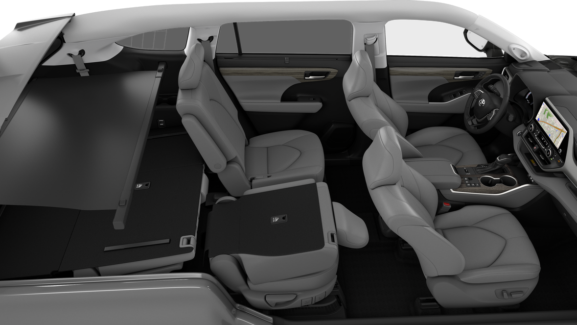 • 7-passenger seating with second-row fold-down captain's chairs and fold-down inboard armrests, adjustable headrests and two cup holders mounted on the floor; and 60/40 split, fold-flat third-row seats with sliding headrests and recline function