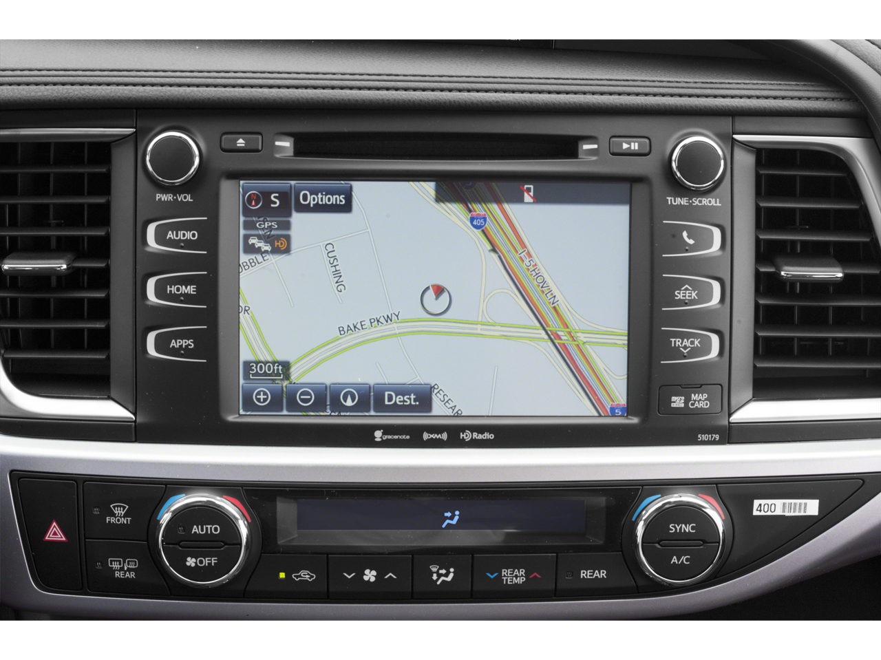 - Radio: Entune Premium Audio w/Nav & App Suite -inc: the Entune Multimedia Bundle (8" high resolution touch-screen w/split screen display, AM/FM CD player, MP3/WMA playback capability, 6 speakers, auxiliary audio jack, USB 2.0 port w/iPod connectivity and control, advanced voice recognition, hands-free phone capability, phone book access and music streaming via Bluetooth® wireless technology), Siri Eyes Free, Entune App Suite, Intelligent Touch controls, SiriusXM Satellite Radio w/3-month complimentary SirusXM All Access trial, HD Radio, HD Radio predictive traffic and Doppler weather overlay, AM/FM cache radio, Gracenotes album cover art and integrated back up camera display w/projected path