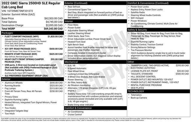 * ALG Residual Value 2022 GMC Sierra 2500HD