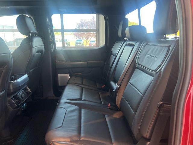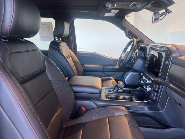 Clean CARFAX. F-150 Raptor, 4D SuperCrew, 3.5L V6 EcoBoost, 10-Speed Automatic, 4WD, Rapid Red Metallic Tinted Clearcoat, Black Leather, Equipment Group 801A Standard, Navigation system: Connected Navigation, 14 Speakers, 17 Cast Aluminum Wheels, 4-Wheel Disc Brakes, ABS brakes, Adaptive suspension, Adjustable pedals, Air Conditioning, Alloy wheels, AM/FM radio: SiriusXM with 360L, Auto High-beam Headlights, Auto tilt-away steering wheel, Auto-dimming door mirrors, Auto-dimming Rear-View mirror, Automatic temperature control, Brake assist, Bumpers: body-color, Compass, Delay-off headlights, Driver door bin, Driver vanity mirror, Dual front impact airbags, Dual front side impact airbags, Electronic Locking w/4.10 Axle Ratio, Electronic Stability Control, Emergency communication system: SYNC 4 911 Assist, Engine Block Heater, Front anti-roll bar, Front Bucket Seats, Front Center Armrest, Front dual zone A/C, Front fog lights, Front reading lights, Front wheel independent suspension, Fully automatic headlights, Garage door transmitter, Heads-Up Display, Heated door mirrors, Heated front seats, Heated rear seats, Heated steering wheel, Illuminated entry, Lane Departure Warning System, Leather Trim Seats, Low tire pressure warning, Memory seat, Occupant sensing airbag, Outside temperature display, Overhead airbag, Overhead console, Panic alarm, Passenger door bin, Passenger vanity mirror, Pedal memory, Power door mirrors, Power driver seat, Power passenger seat, Power steering, Power windows, Radio data system, Radio: B&O Unleashed Sound System by Bang & Olufsen, Rain sensing wipers, Rear reading lights, Rear step bumper, Rear window defroster, Remote keyless entry, Security system, Speed control, Speed-sensing steering, Split folding rear seat, Steering wheel memory, Steering wheel mounted audio controls, SYNC 4 w/Enhanced Voice Recognition, Tachometer, Telescoping steering wheel, Tilt steering wheel, Tough Bed Spray-In Bedliner, Traction control, Trip computer, Turn signal indicator mirrors, Twin Panel Moonroof, Variably intermittent wipers, Ventilated front seats, F-150 Raptor, 4D SuperCrew, 3.5L V6 EcoBoost, 10-Speed Automatic, 4WD, Rapid Red Metallic Tinted Clearcoat, Black Leather, Equipment Group 801A Standard, Navigation system: Connected Navigation.